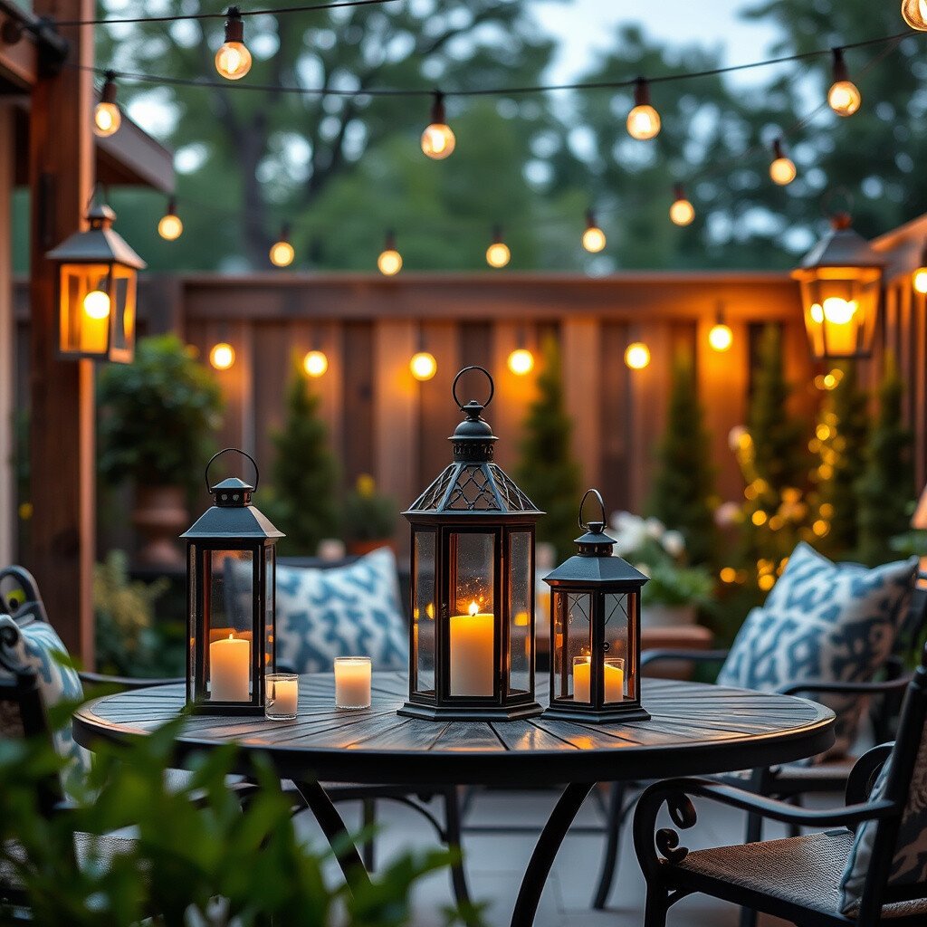 Use solar-powered lanterns for an eco-friendly option. You can find them in metal, wood, or glass, each offering a different vibe.