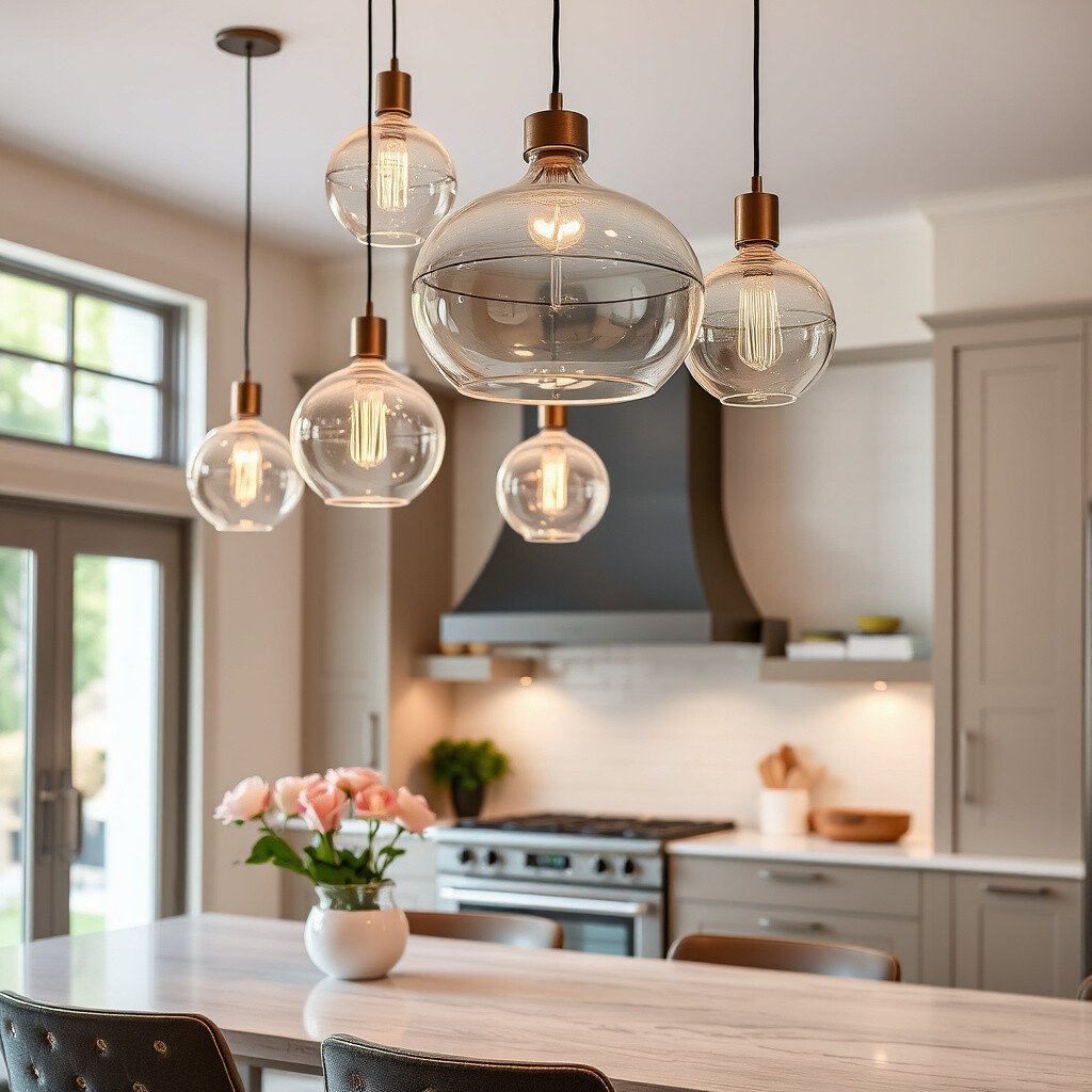 They work well above kitchen islands or dining tables. Choose clear glass for a minimalist look or colored glass for a pop of color.
