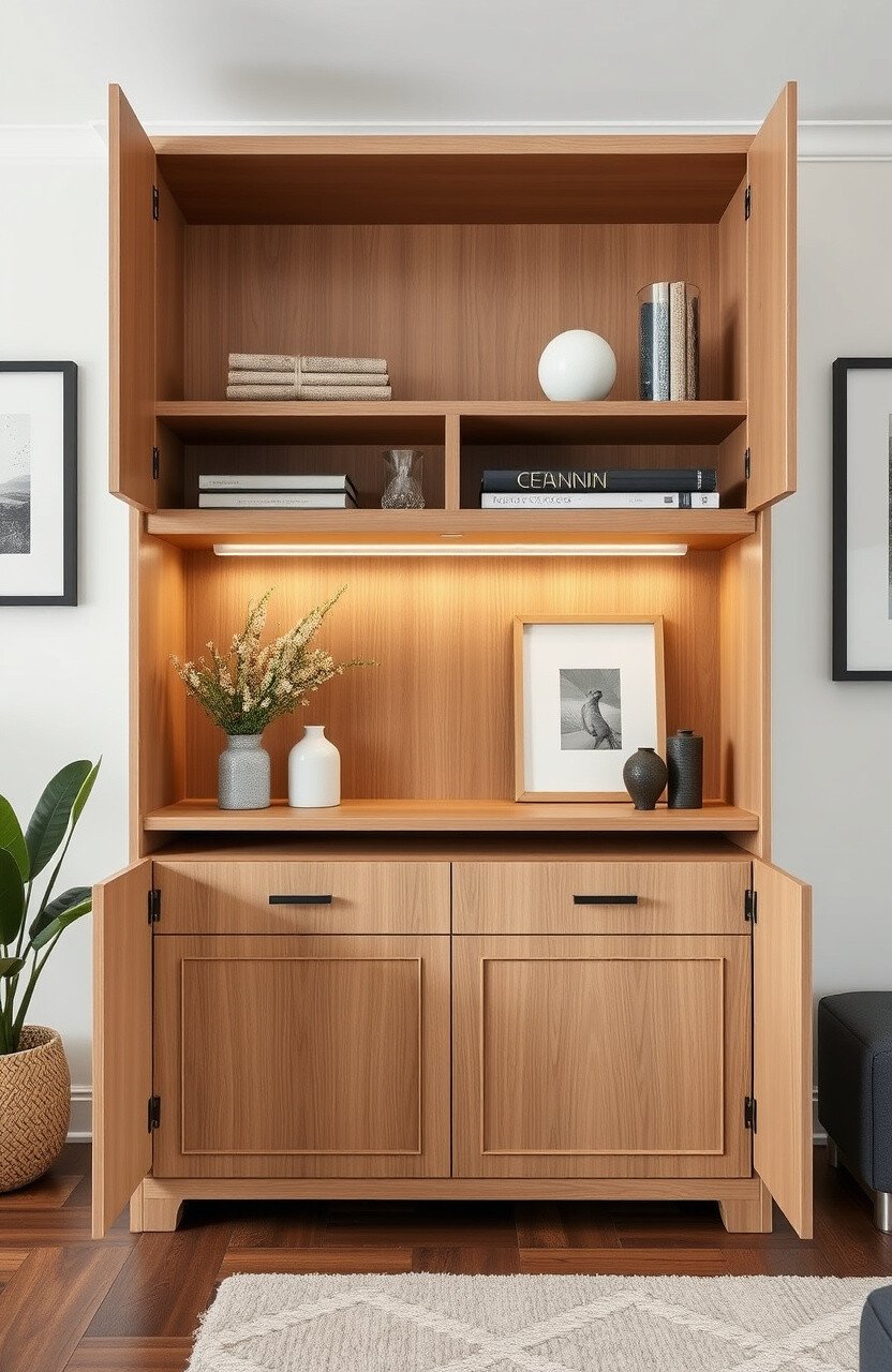 Who doesn’t love furniture that does more than one thing? Multi-functional cabinets can serve as storage, a TV stand, and even a workspace. They’re ideal for small spaces where every inch counts.