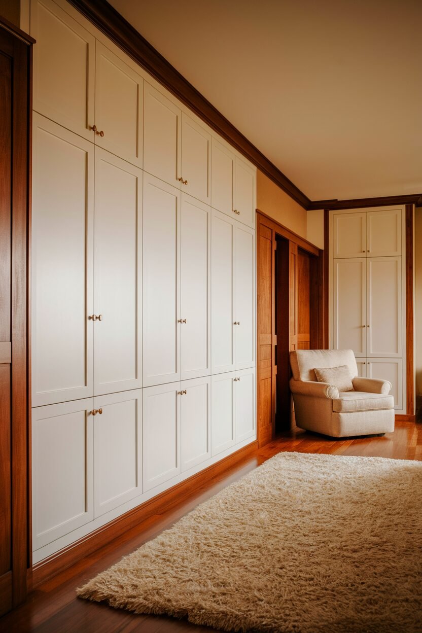 8. White Built-In Cabinets with Wood Trim