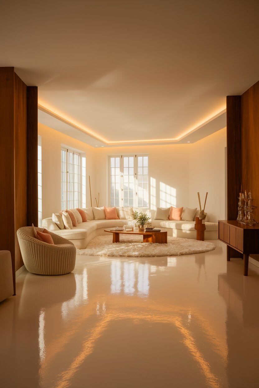 Consider adding colorful rugs or cushions to complement the white flooring. This little detail can add personality and warmth to your living space.