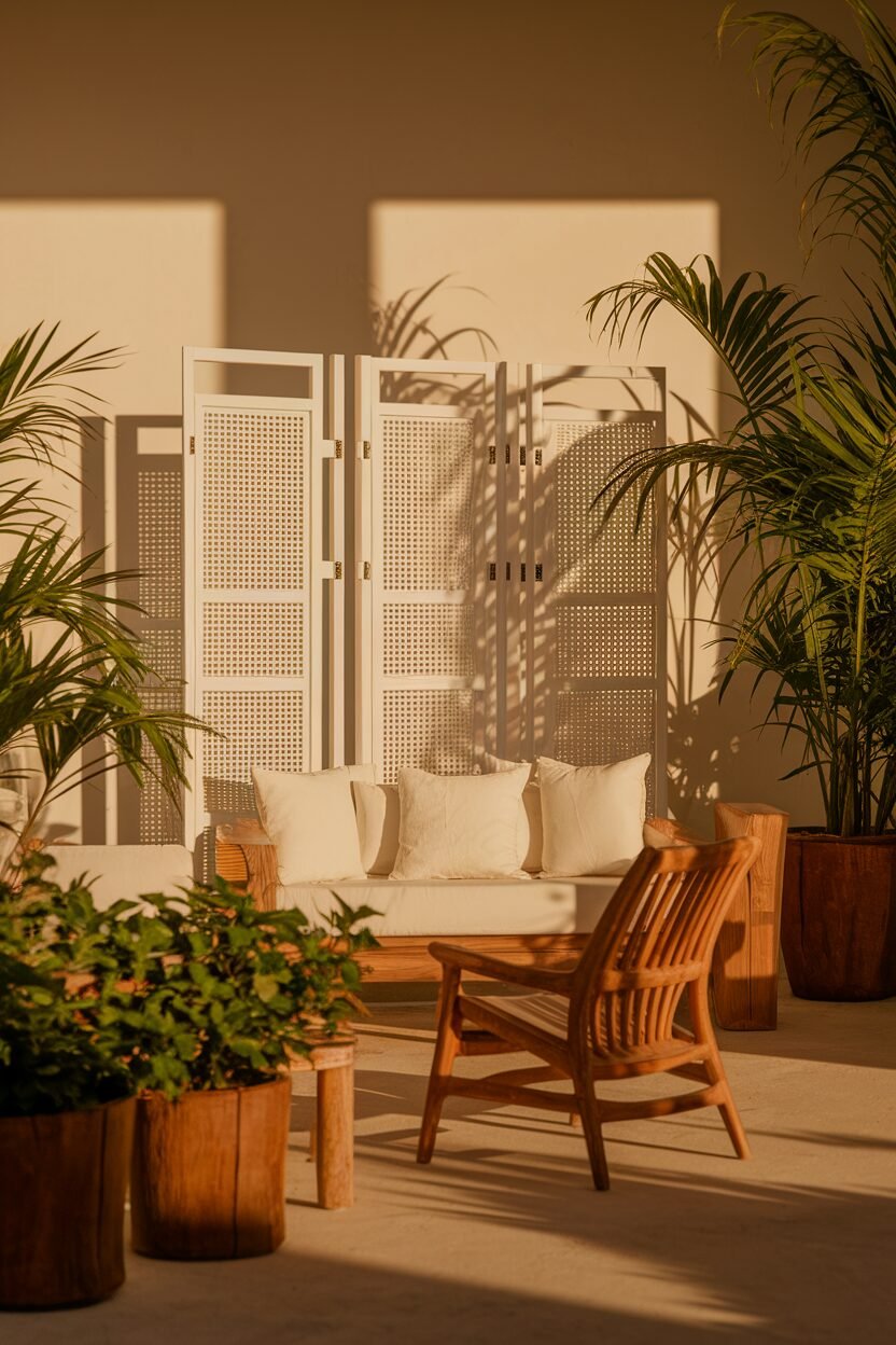 The combination of white and wood creates a beautifully balanced look, making your space feel more inviting. Plus, these screens can add a touch of privacy when needed.