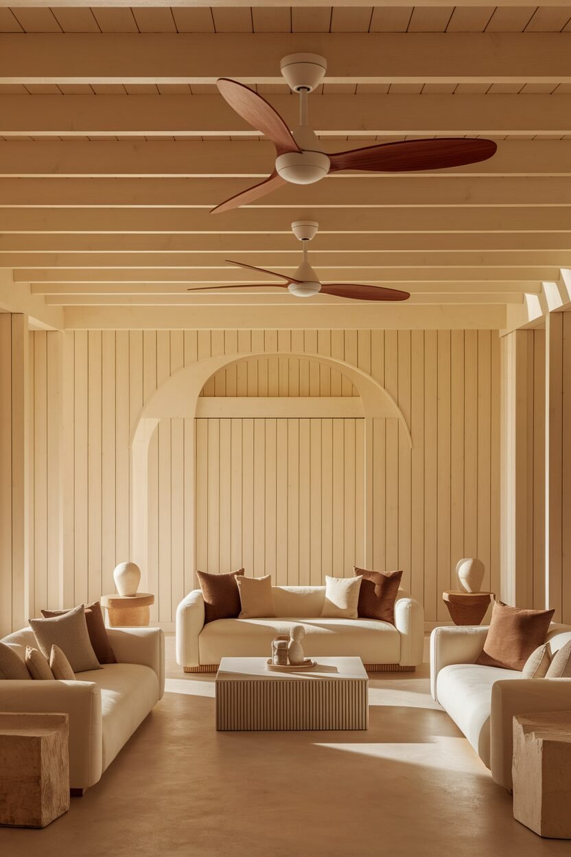 26. White Ceiling Fans with Wooden Blades