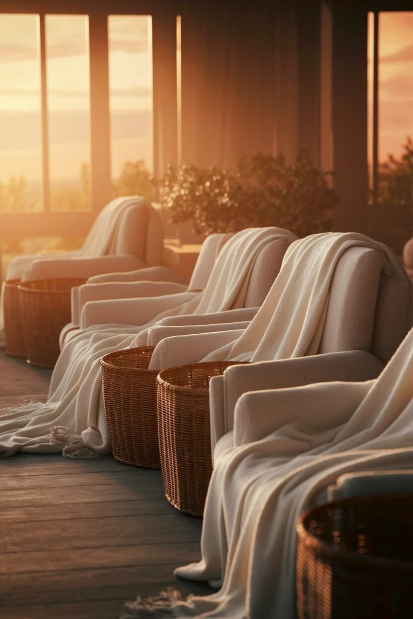 Cozying up with white throw blankets in wooden baskets adds charm to your living room. This setup combines comfort and style, making your space feel inviting and warm.