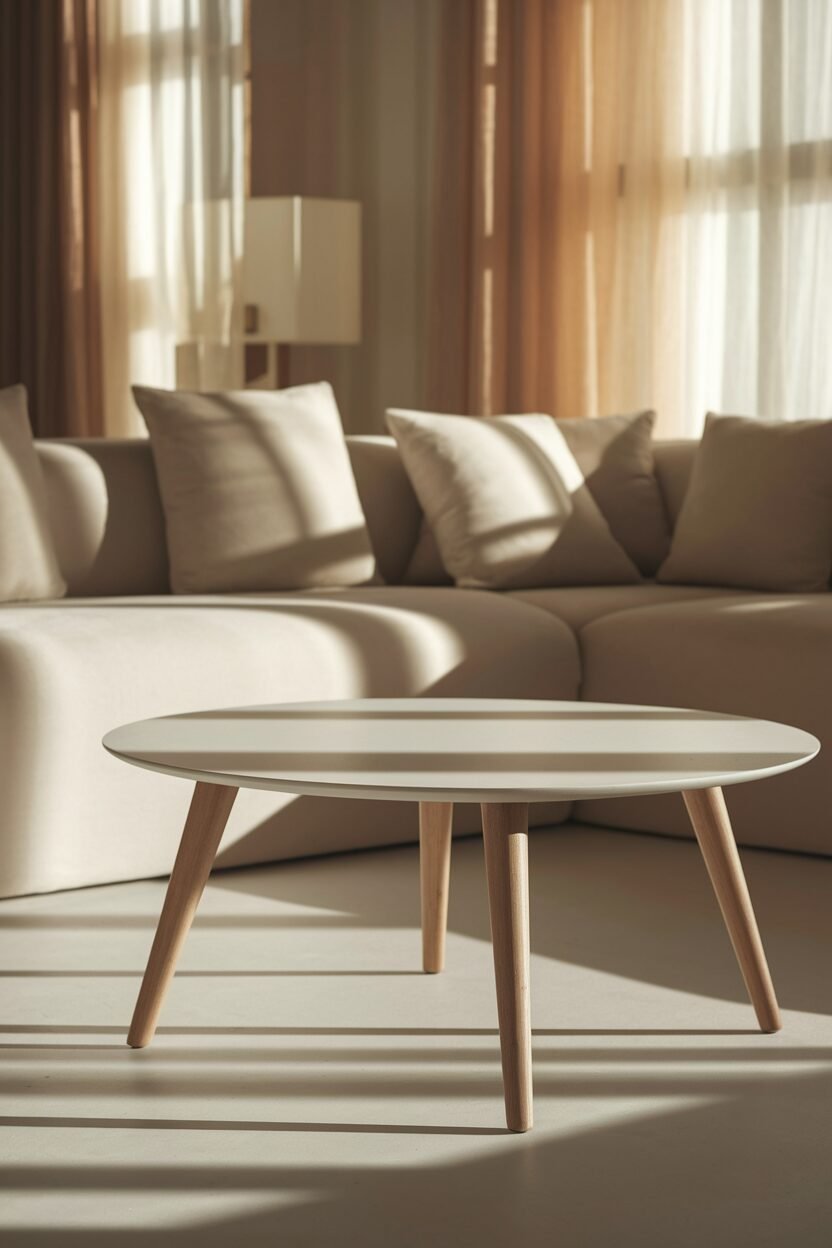 A white coffee table with wooden legs adds a modern touch to your living room. The combination of materials creates a stylish yet functional piece that can fit any decor.