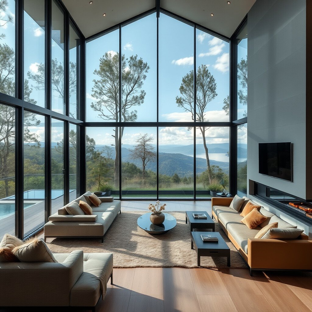 Imagine a living room with floor-to-ceiling glass walls, bringing the outside in. This design maximizes natural light and offers panoramic views of the surrounding landscape.