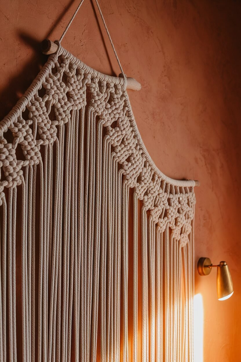 Who needs a traditional headboard when you can have a macrame masterpiece? A large, intricate macrame hanging can serve as a unique headboard. It’s a stunning way to make your bed the centerpiece of the room.