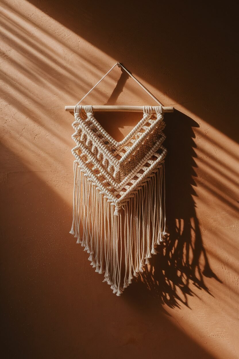 For a modern touch, consider a geometric macrame wall hanging. This design is all about clean lines and symmetry. It offers a contemporary twist on traditional macrame.