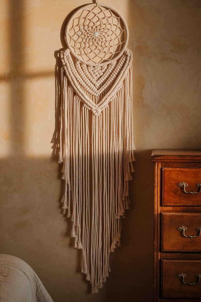 The beauty of a cascading macrame dreamcatcher lies in its layers. Each layer adds depth and texture, making your wall a piece of art. The delicate threads catch the light, creating a magical ambiance.