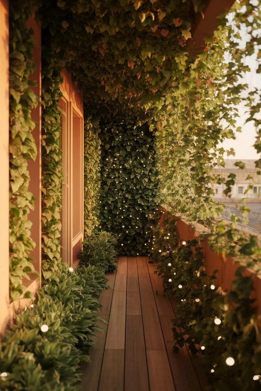 Creating a green wall can add beauty and privacy to your balcony in a big way. These walls are made up of various plants, creating a stunning living backdrop.