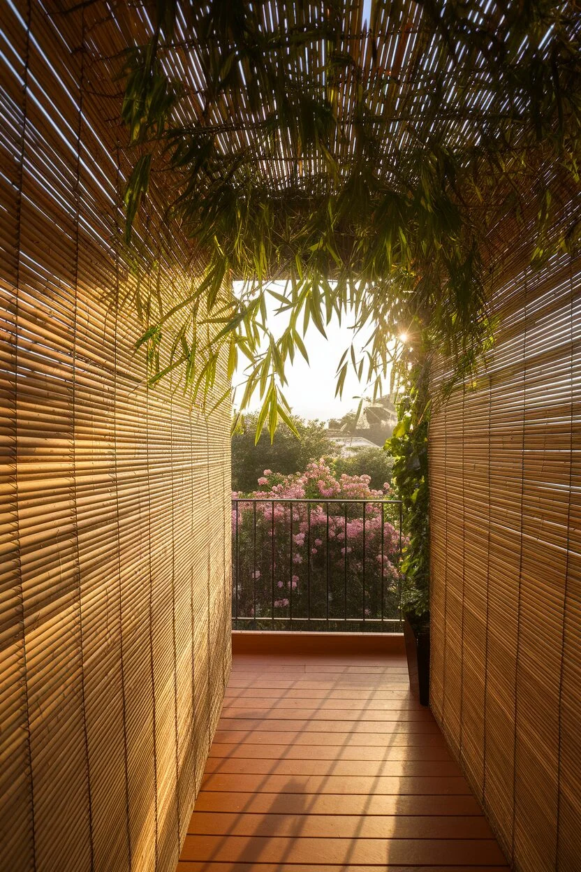 Bamboo screens are both stylish and effective for creating a natural barrier. They add a warm vibe to your space and can fit any balcony size.