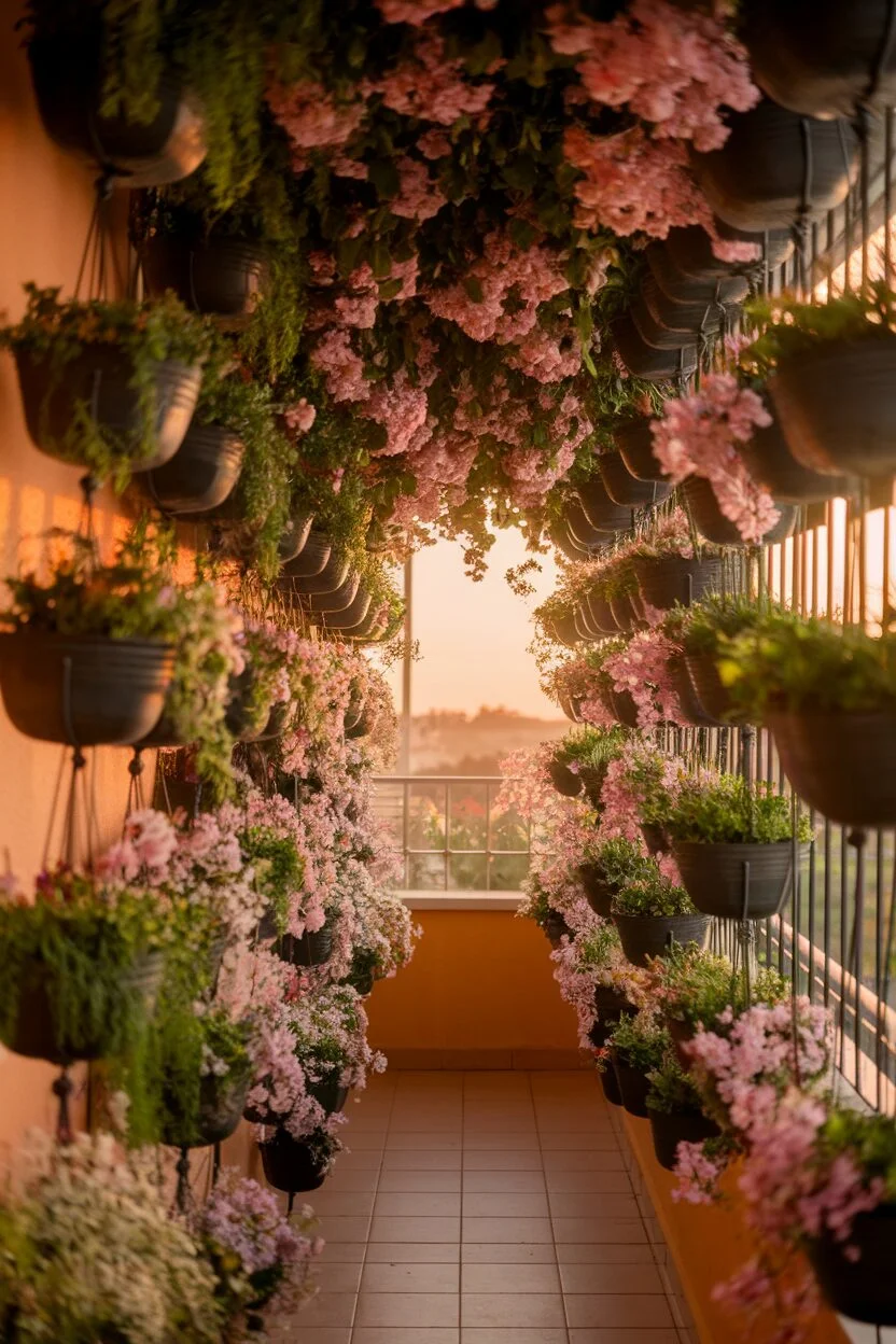 Hanging planters can add height and visual interest to your balcony while also providing privacy. They can be filled with colorful flowers or lush greenery to create a beautiful screen.