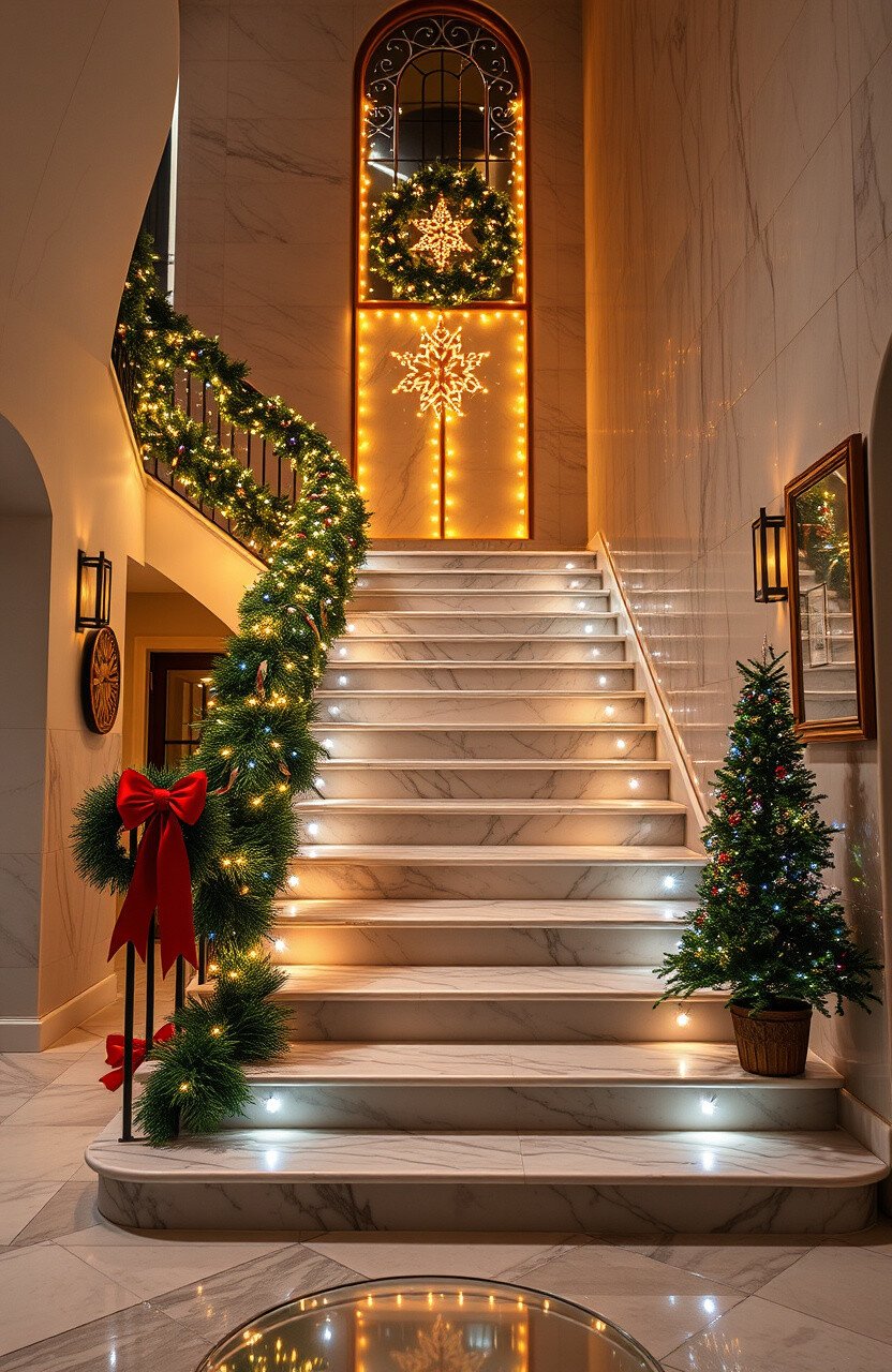 Festive seasonal lights can add a cheerful and celebratory touch to your marble staircase. They offer a versatile and fun lighting option for any occasion.