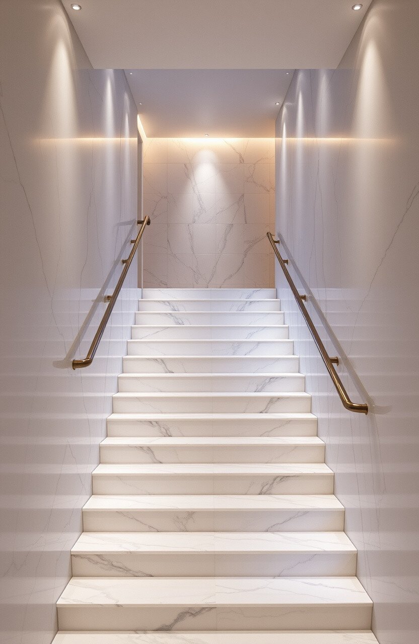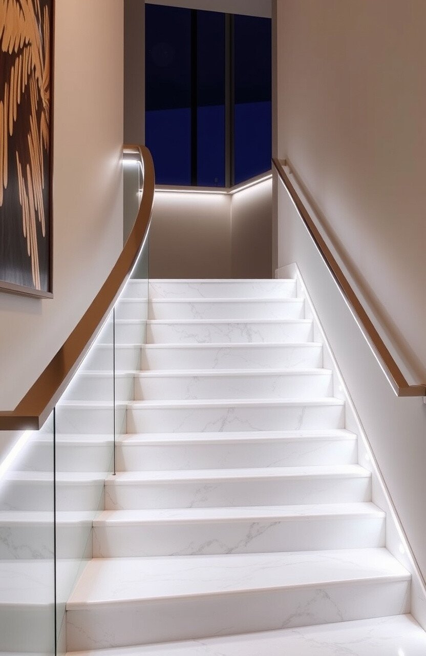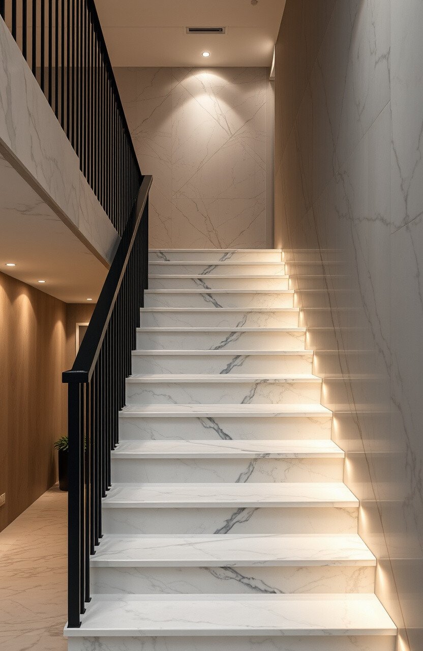 Vertical light strips can add a sleek and modern touch to your marble staircase. They provide a continuous and even glow that enhances the space.
