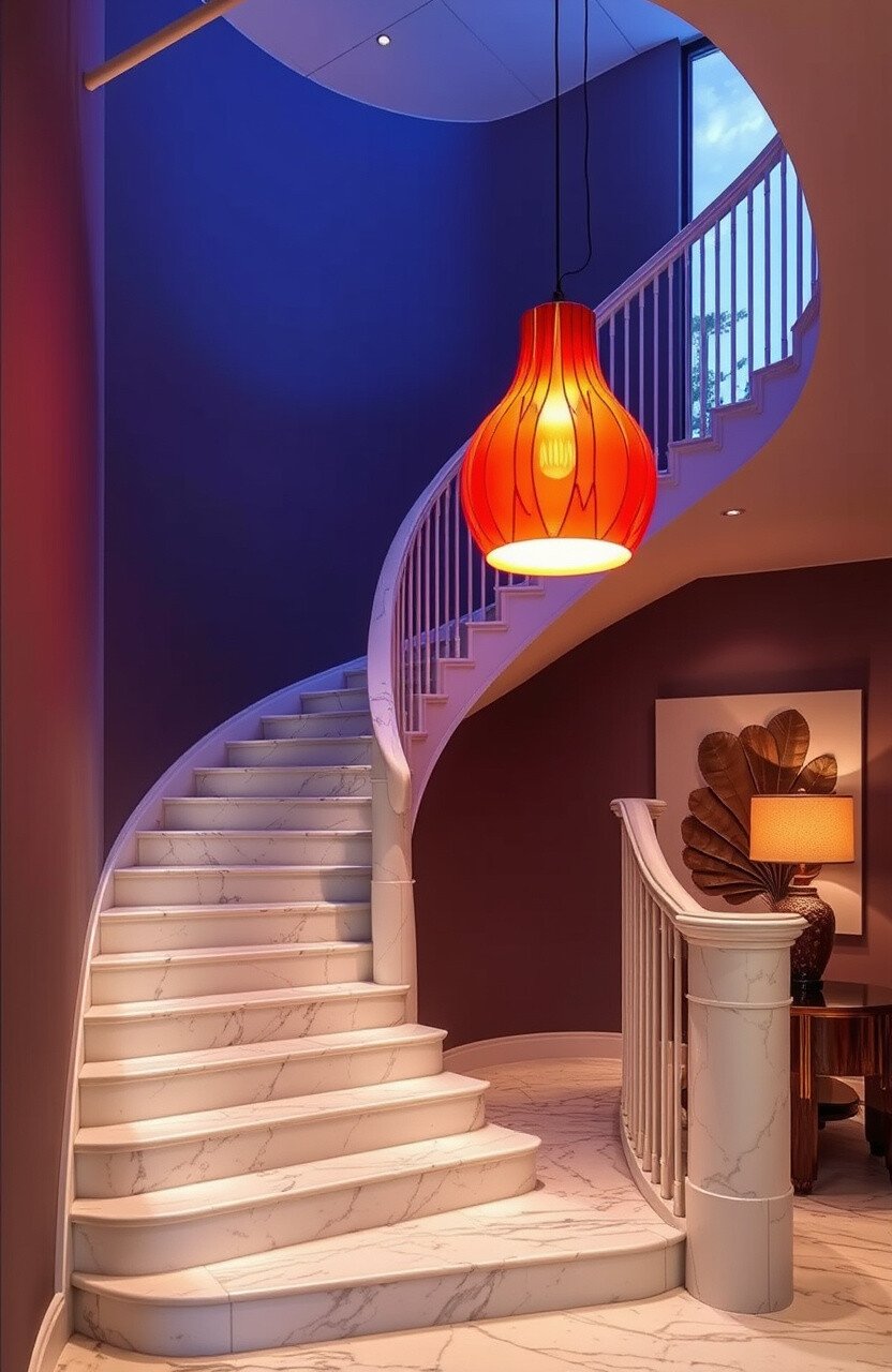 Artistic light fixtures can turn your marble staircase into a gallery space. They offer creative and eye-catching designs that double as art pieces.