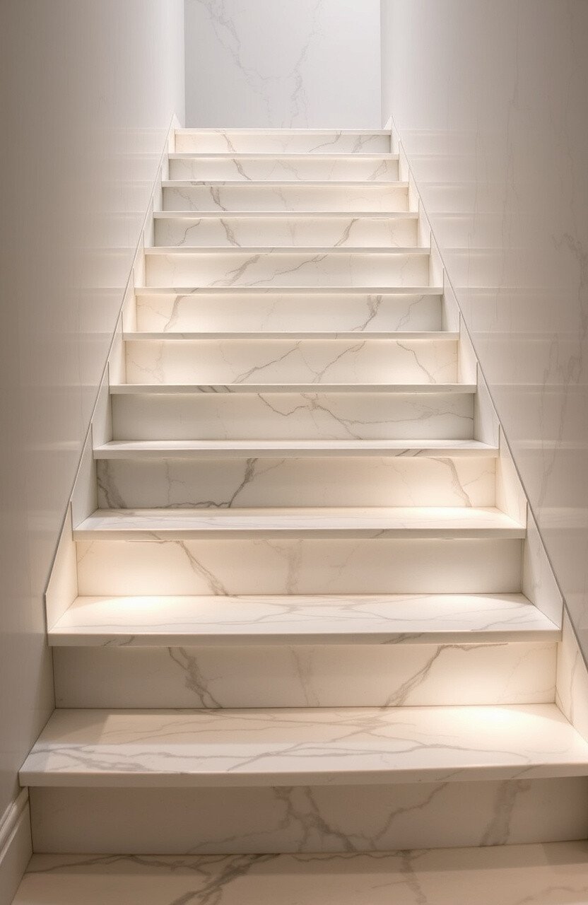 Understep lighting involves installing lights directly under the steps of your marble staircase. This provides a subtle yet effective illumination that highlights each step.