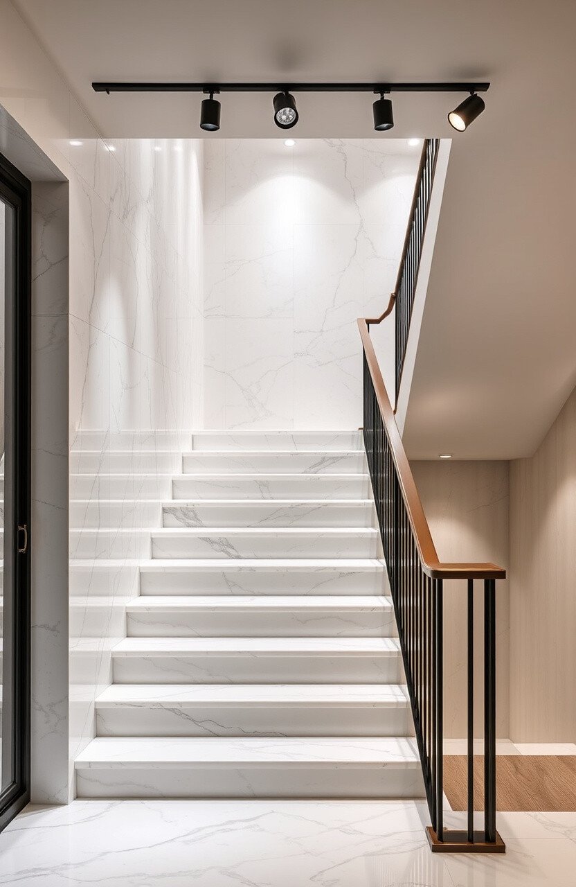 Track lighting is a flexible option for illuminating your marble staircase. It allows you to direct light exactly where you need it, providing both form and function.