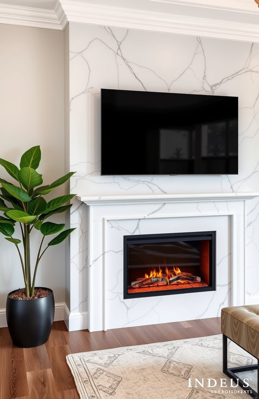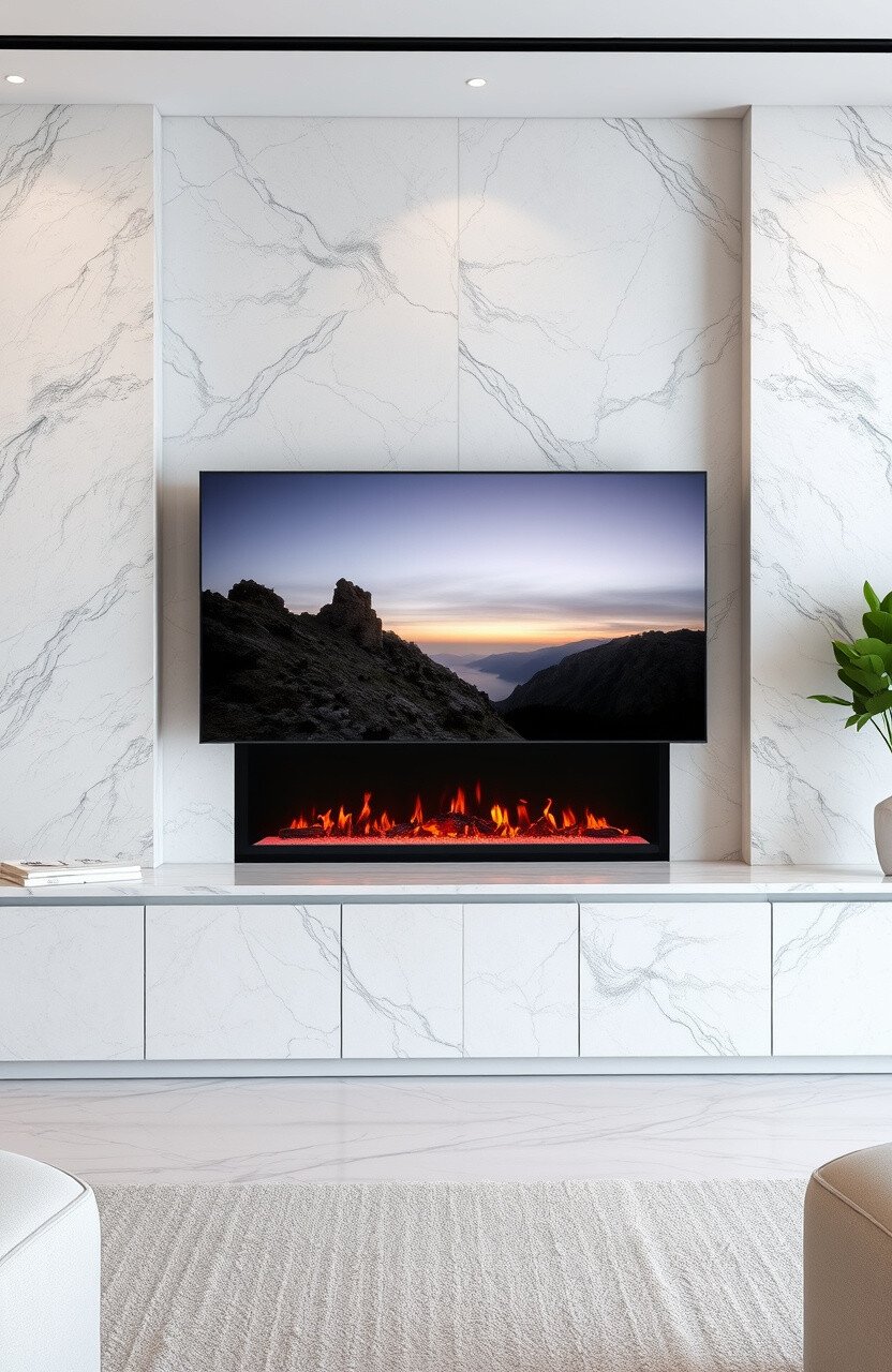 Imagine the elegance of marble blending seamlessly with the warmth of an electric fireplace. This combination not only creates a luxurious focal point but also adds a cozy ambiance to any living space.