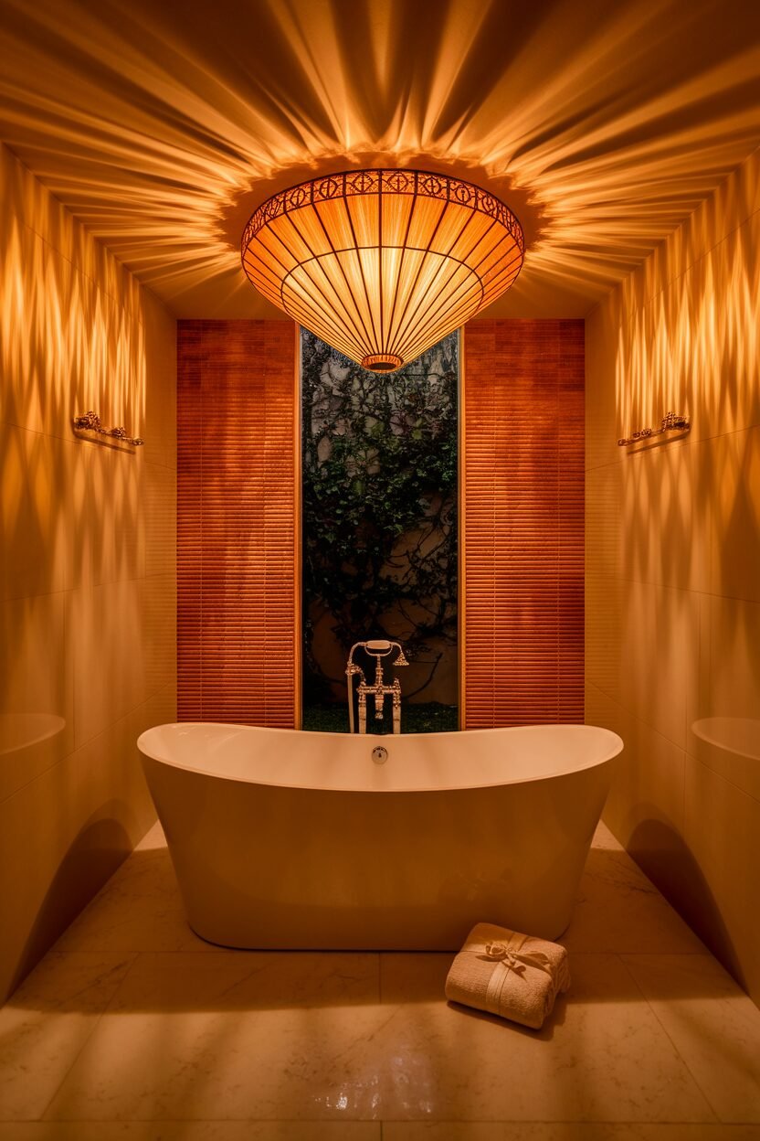 Lighting can make or break a bathroom’s vibe! A statement light fixture can add character and elegance, turning your bathroom into a stylish haven.