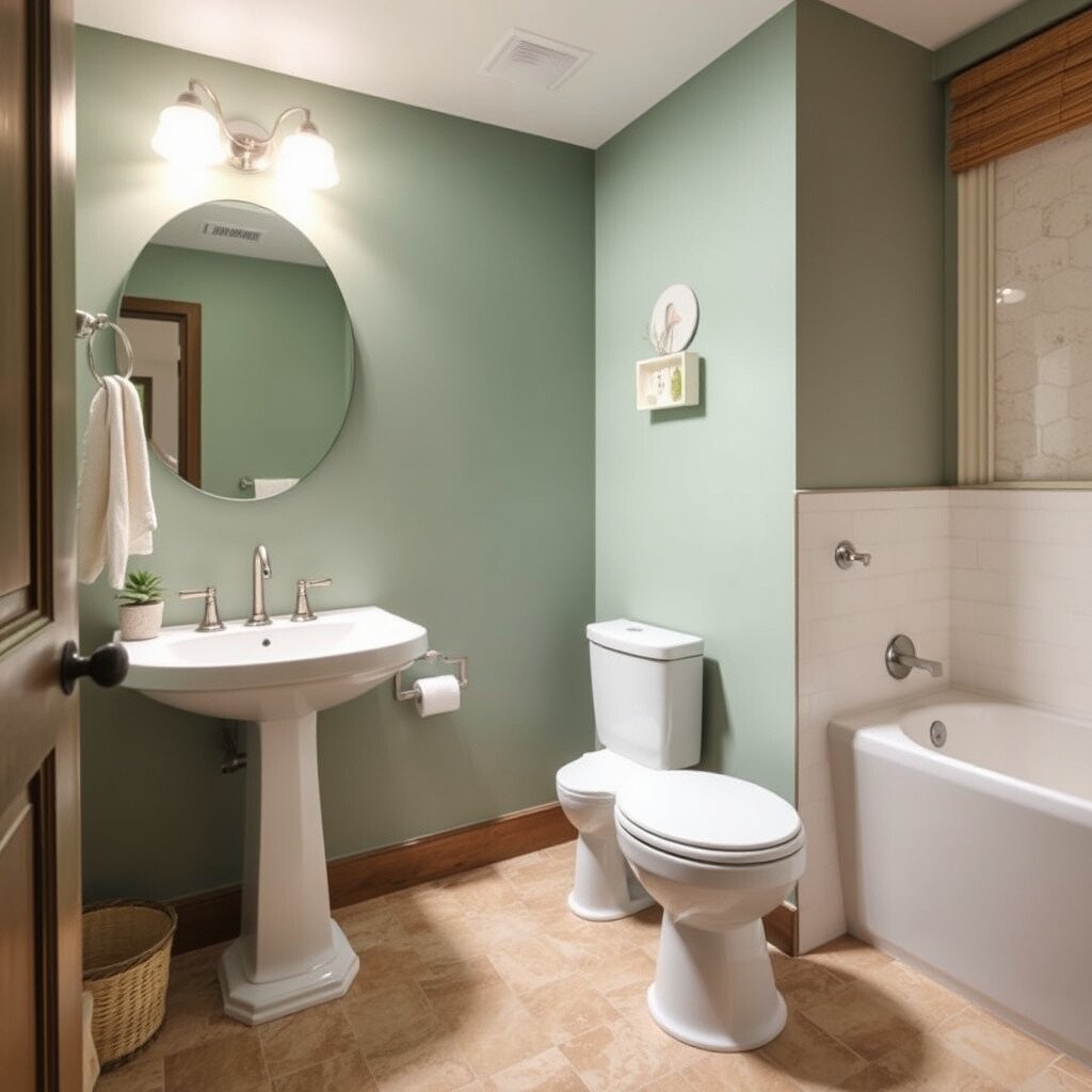 These shades make the bathroom feel open and airy, providing a blank canvas for accents. It’s a cost-effective way to remodel, as you can often work with existing fixtures.