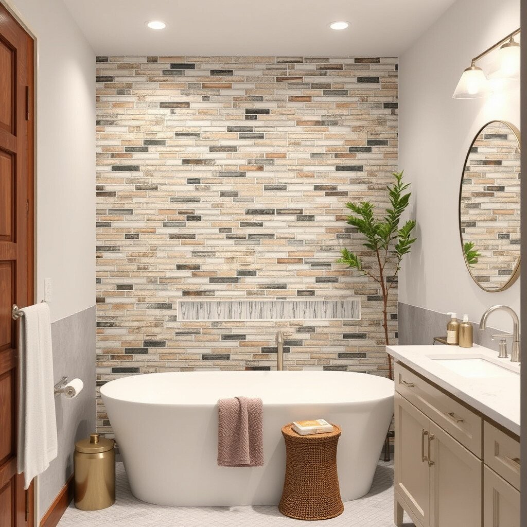 Create an accent wall using colorful or textured tiles. This adds depth and interest to your bathroom.
