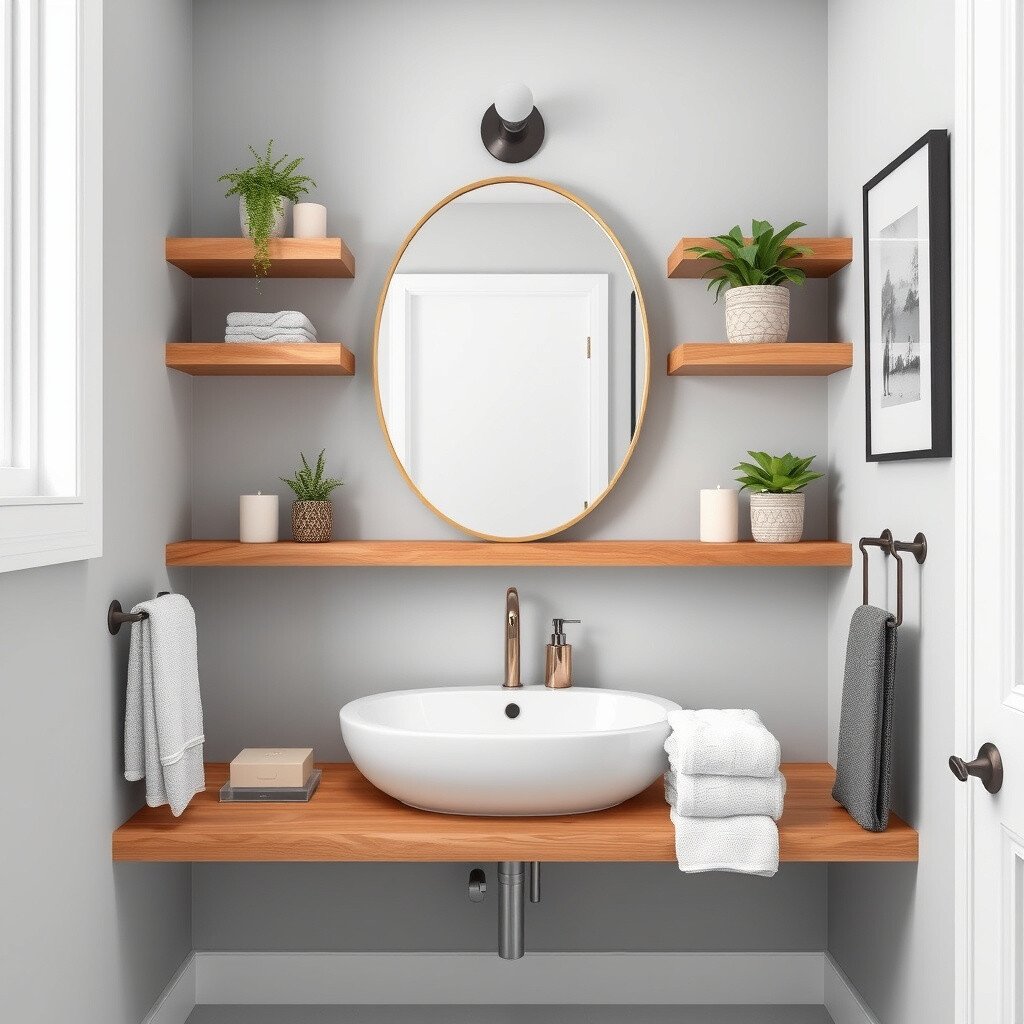 Floating shelves are perfect for adding storage without cluttering the space. They provide a chic and modern look, ideal for displaying plants, candles, or towels.
