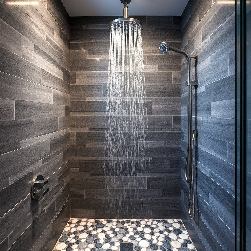 Installing a rainfall showerhead is an affordable upgrade, usually under $200. Pair it with a pebble tile floor to create a spa-like ambiance that’s both unique and refreshing.