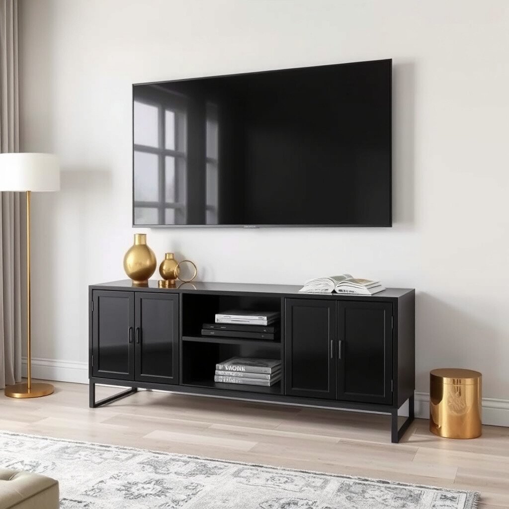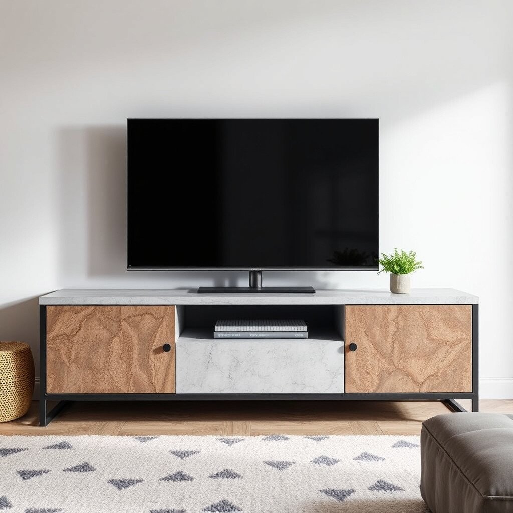 For a modern edge, consider a media console made of metal. Steel or iron with a matte finish brings an industrial vibe to your space.