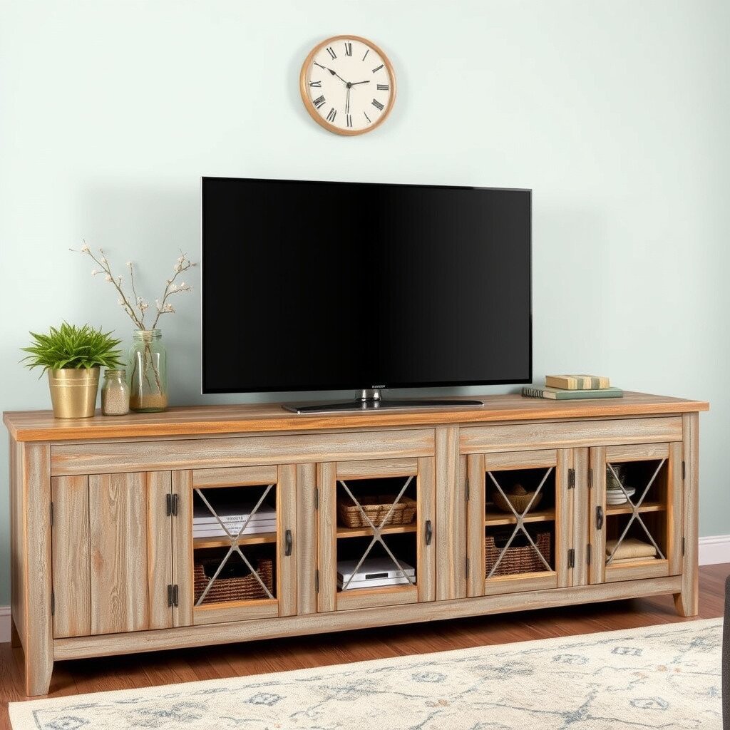If you love the farmhouse style, a rustic media console is your best friend. Think weathered wood, distressed finishes, and lots of character.