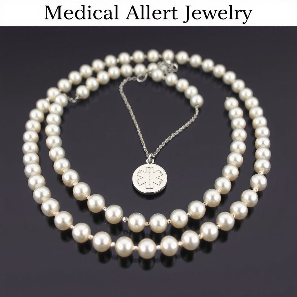 Pearl necklaces are classic and elegant. Picture a string of lustrous pearls with a discreetly placed medical tag. These necklaces are perfect for those who love timeless beauty.