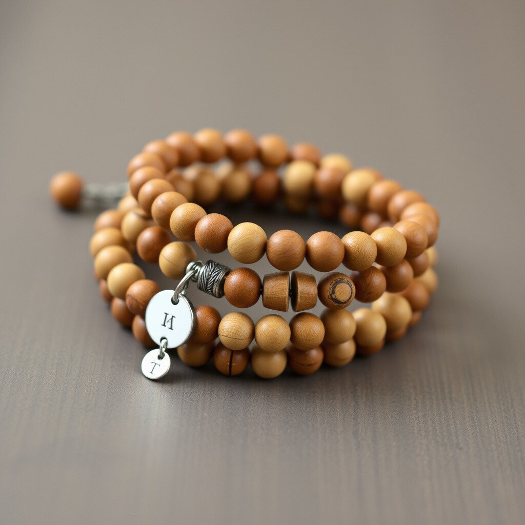Wooden bead bracelets are earthy and natural. Think of a string of polished wooden beads with a small engraved charm. They’re perfect for those who love a rustic or bohemian style.