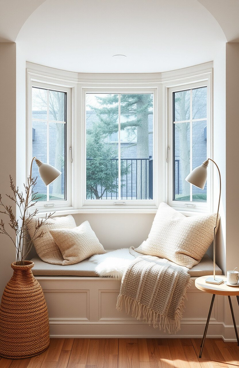 Embrace simplicity with a minimalist nook that focuses on clean lines and neutral tones. Use a single cushion and a soft, lightweight throw for a clutter-free zone.