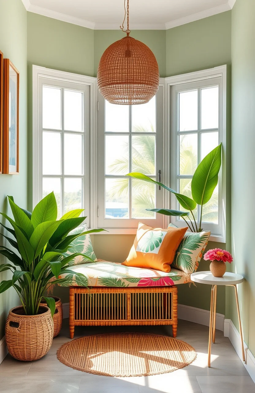 Turn your nook into a tropical paradise with bright colors, palm prints, and natural materials like rattan or bamboo.