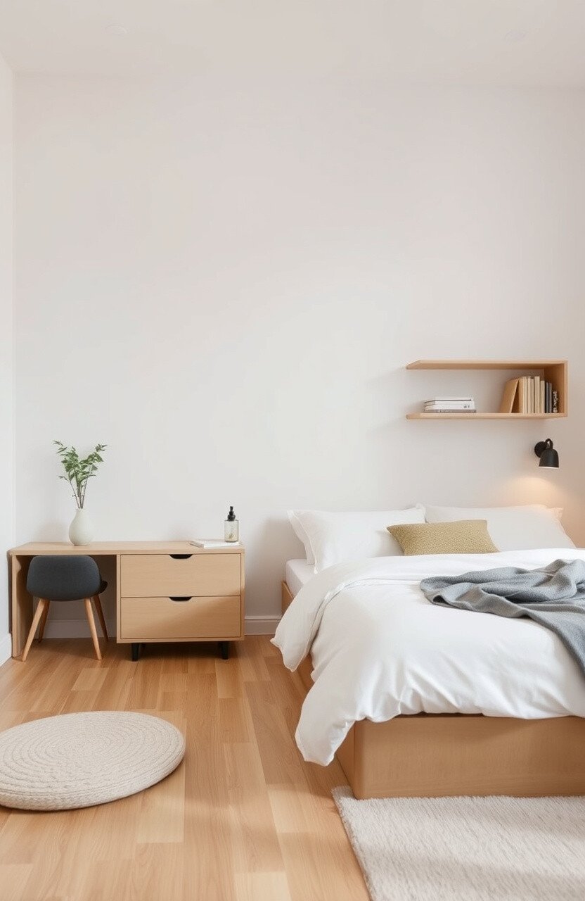 This approach keeps your room tidy and adds personality. It combines form and function, essential elements of minimalist design.