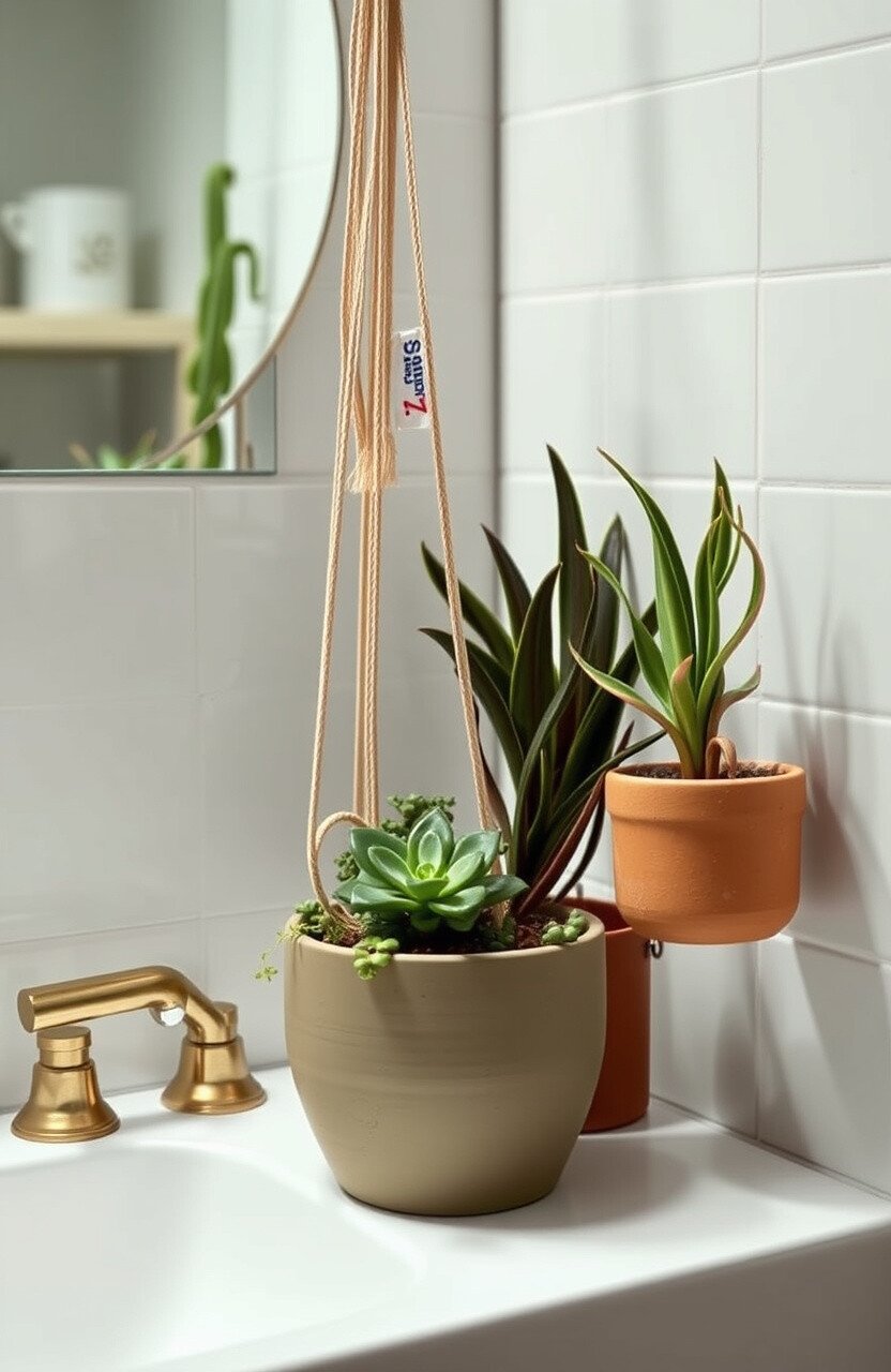 They add life and color to your bathroom without overwhelming the space. Small pots or hanging planters work beautifully.