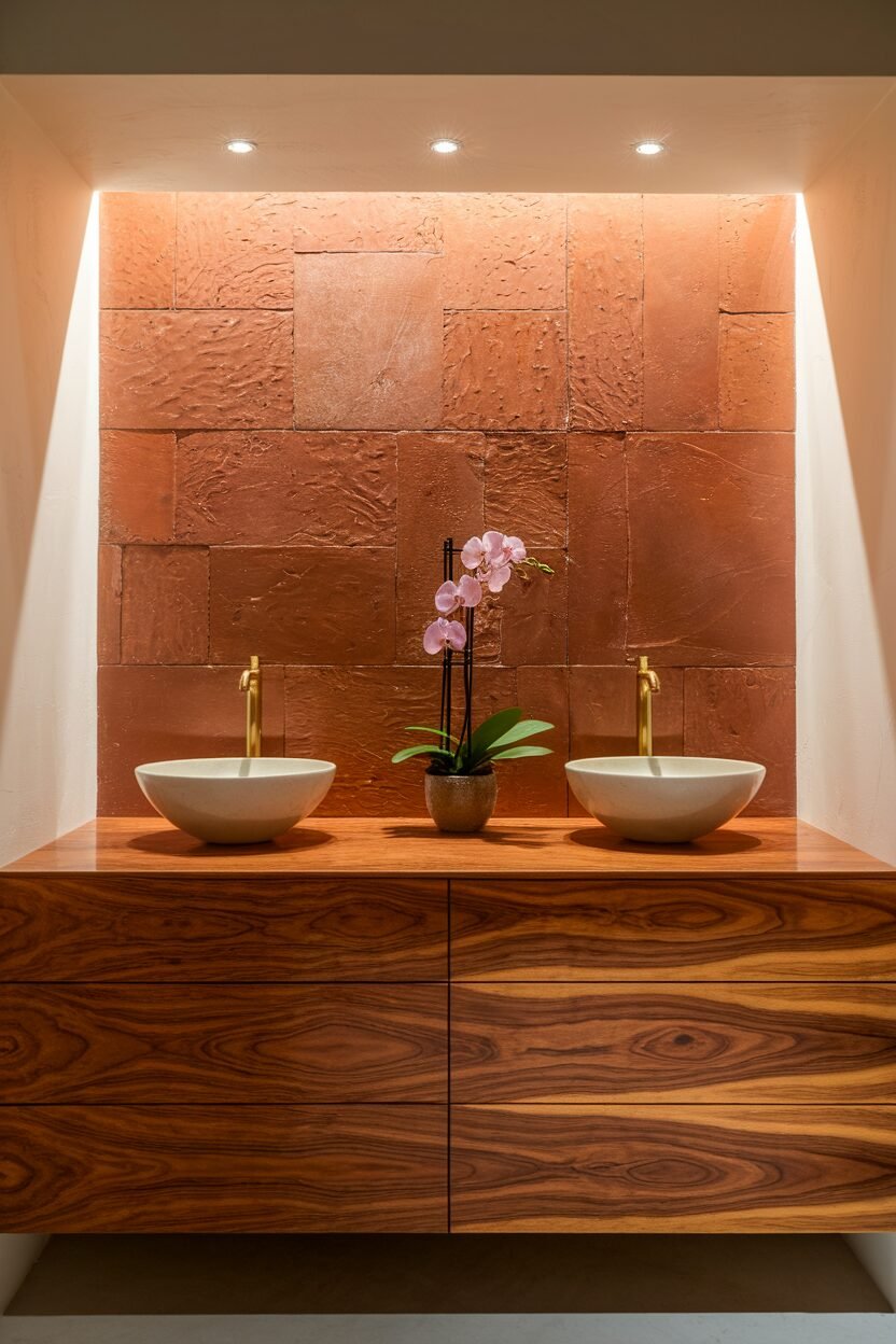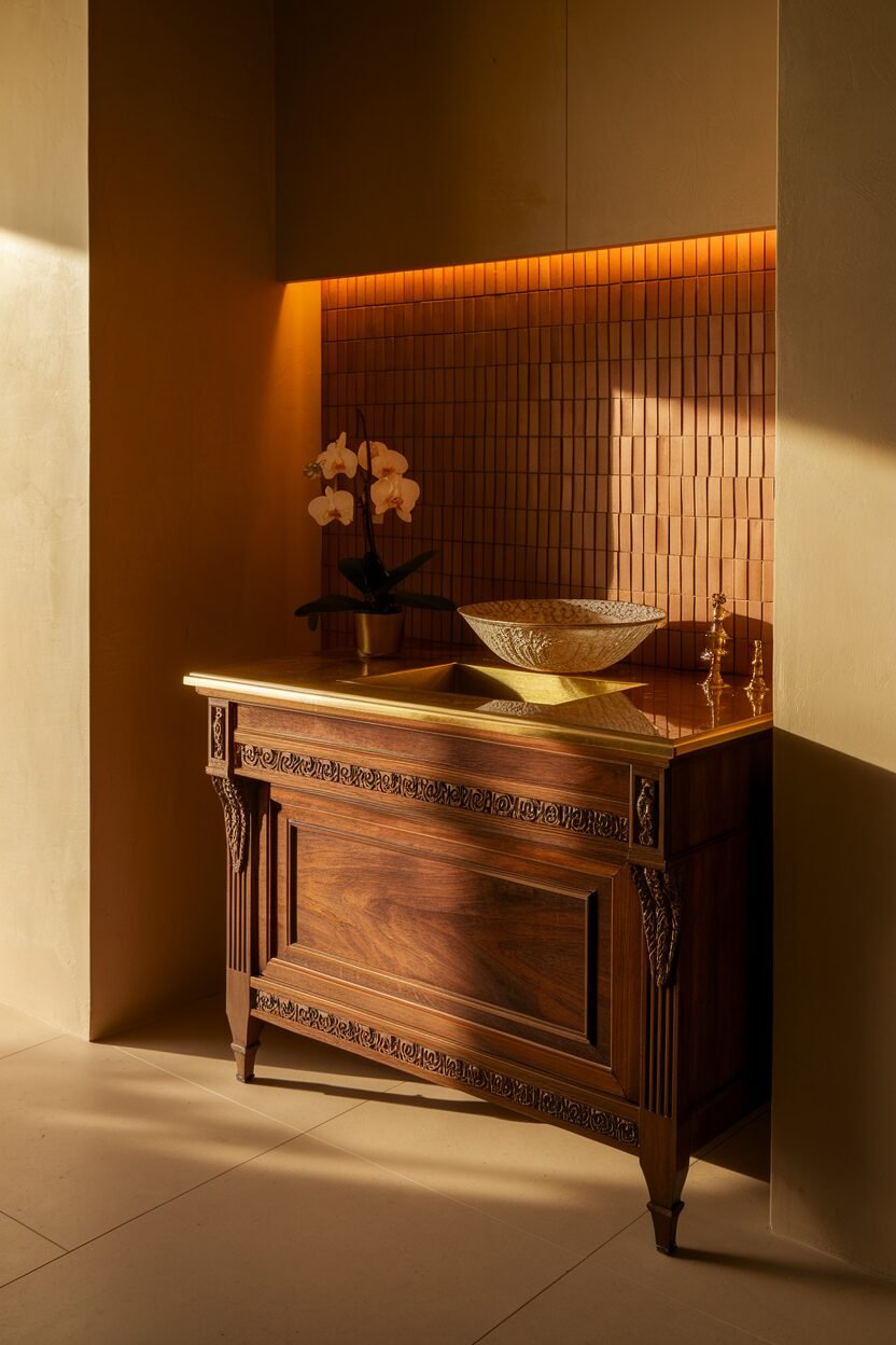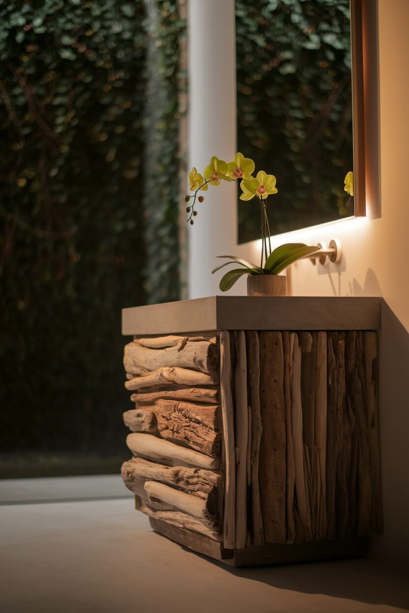 These vanities often feature natural wood grains and unique textures that tell a story. They pair beautifully with earthy tones and soft lighting for a relaxing atmosphere.