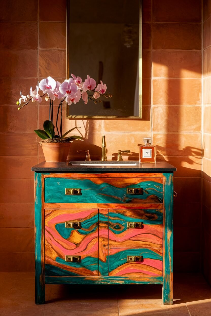 Want to add a splash of creativity? An artistic mosaic vanity can turn your bathroom into a vibrant work of art!