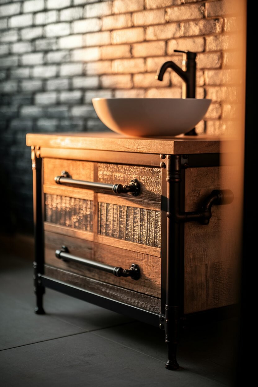 These vanities often feature metal frames and reclaimed wood surfaces that add character and a unique vibe. They’re perfect for adding a touch of urban flair to your space.