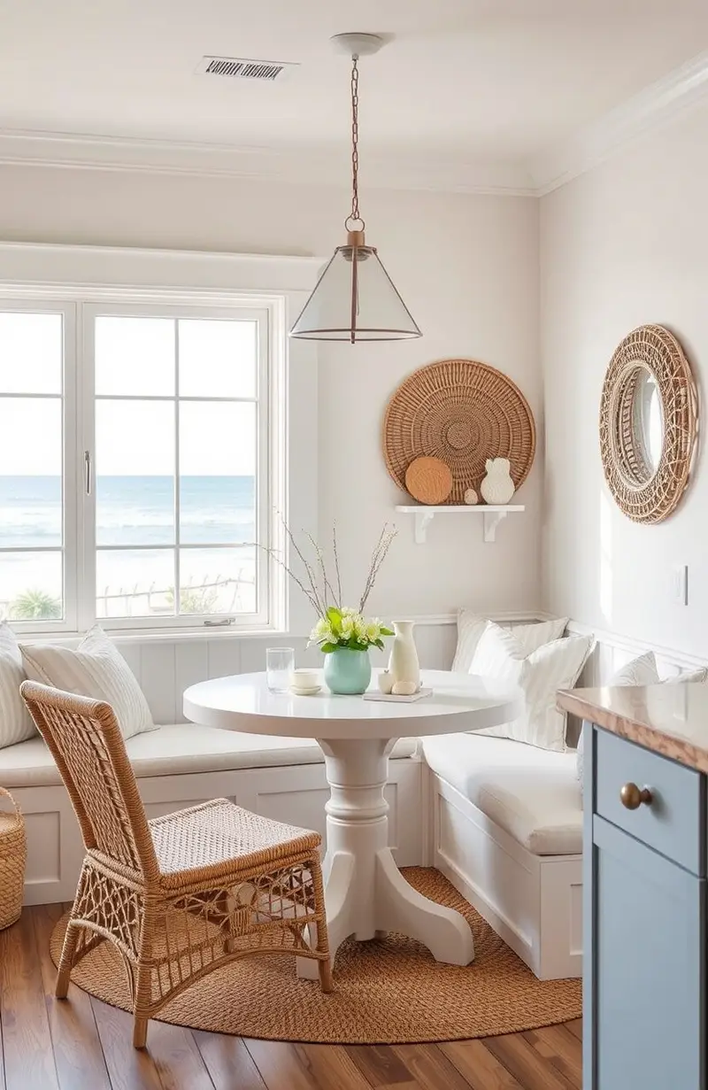 Bring the beach to your breakfast nook with coastal-inspired decor. This style is all about light colors, natural textures, and a breezy feel.