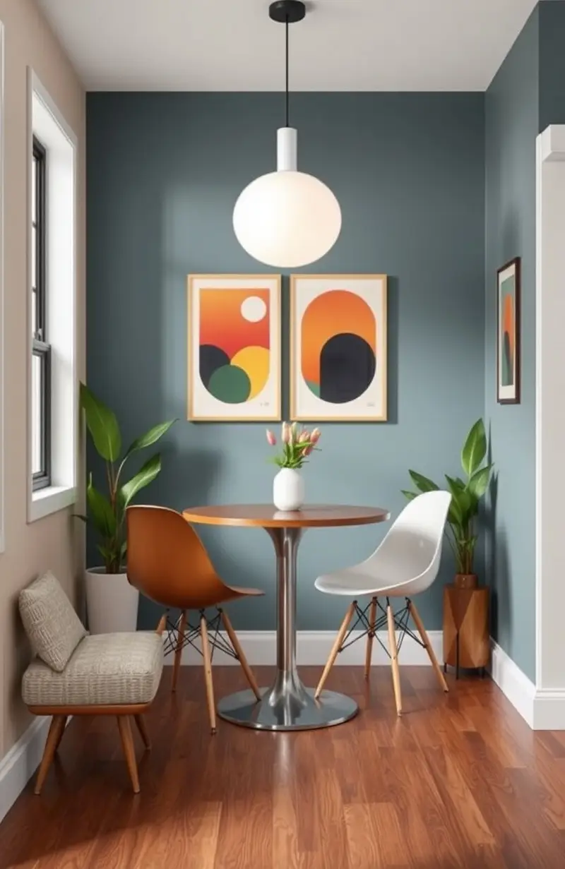 Capture the essence of the 1950s and 60s with a mid-century modern breakfast nook. It’s all about sleek lines, organic shapes, and functionality.