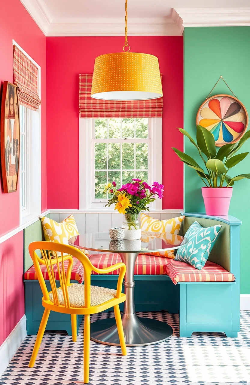 Infuse your mornings with energy by creating a bold and bright breakfast nook. It’s all about vibrant colors, fun patterns, and a cheerful vibe.