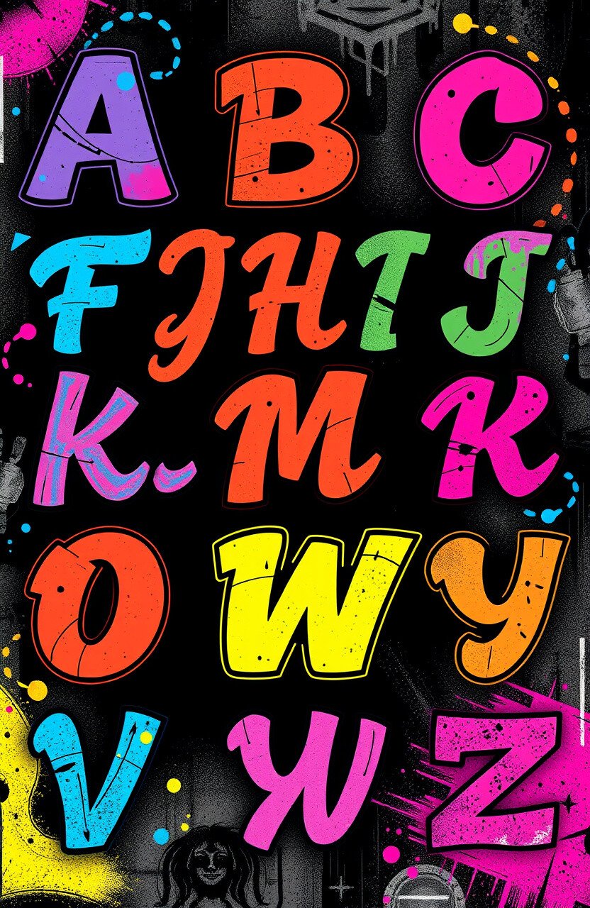 Bring the street art vibe indoors with this chart, inspired by the vibrant world of graffiti. Each letter bursts with color and creativity, perfect for edgy, modern spaces.