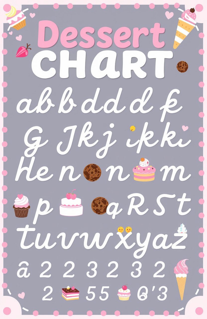 Picture a chart where each letter is a dessert delight. Cakes, cookies, and ice cream make this chart a sweet treat.
