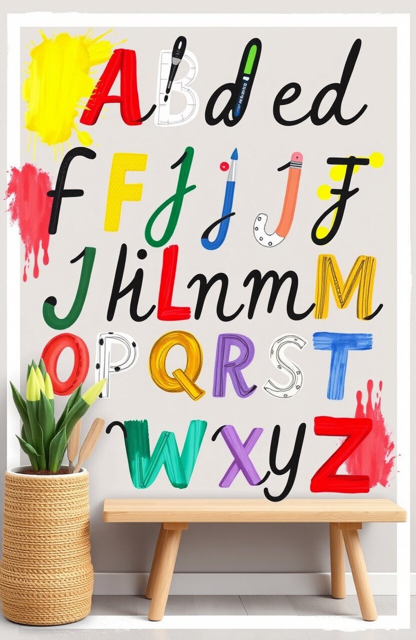 Think of a chart where each letter is a piece of art. Paint, pencils, and brushes make this chart an artistic masterpiece.