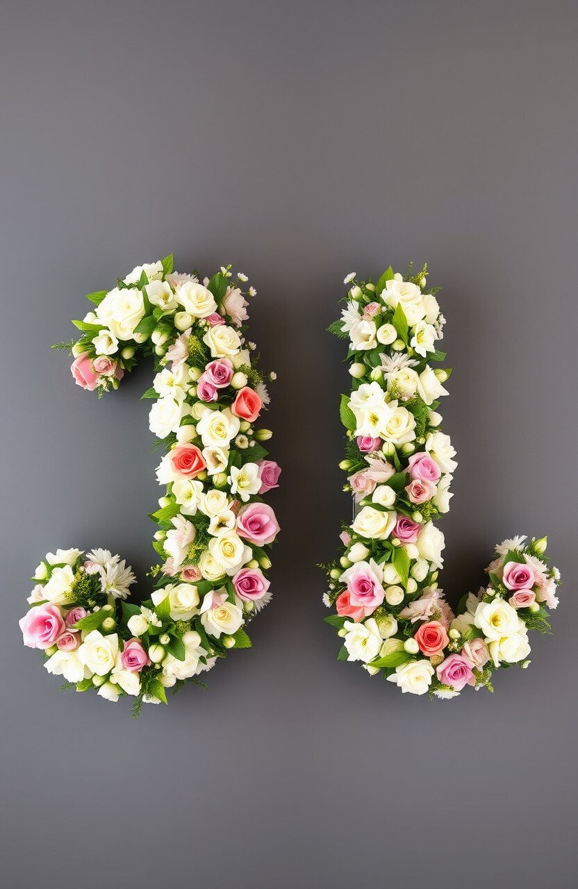 Floral cursive letters bring the beauty of nature into your wedding, creating a garden-like atmosphere. Each letter is intertwined with blooms.