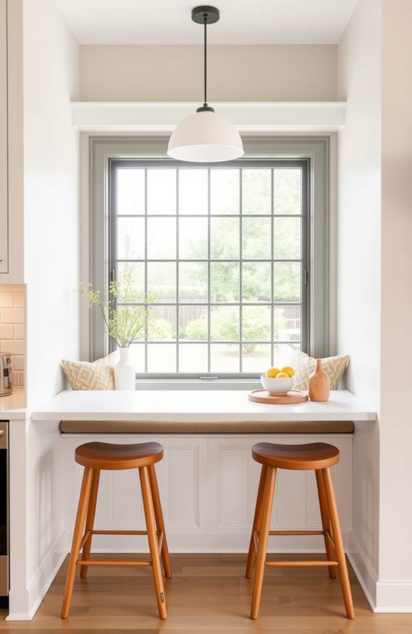 Think of a sleek breakfast bar set up against the window. It’s like a modern twist on the traditional nook.