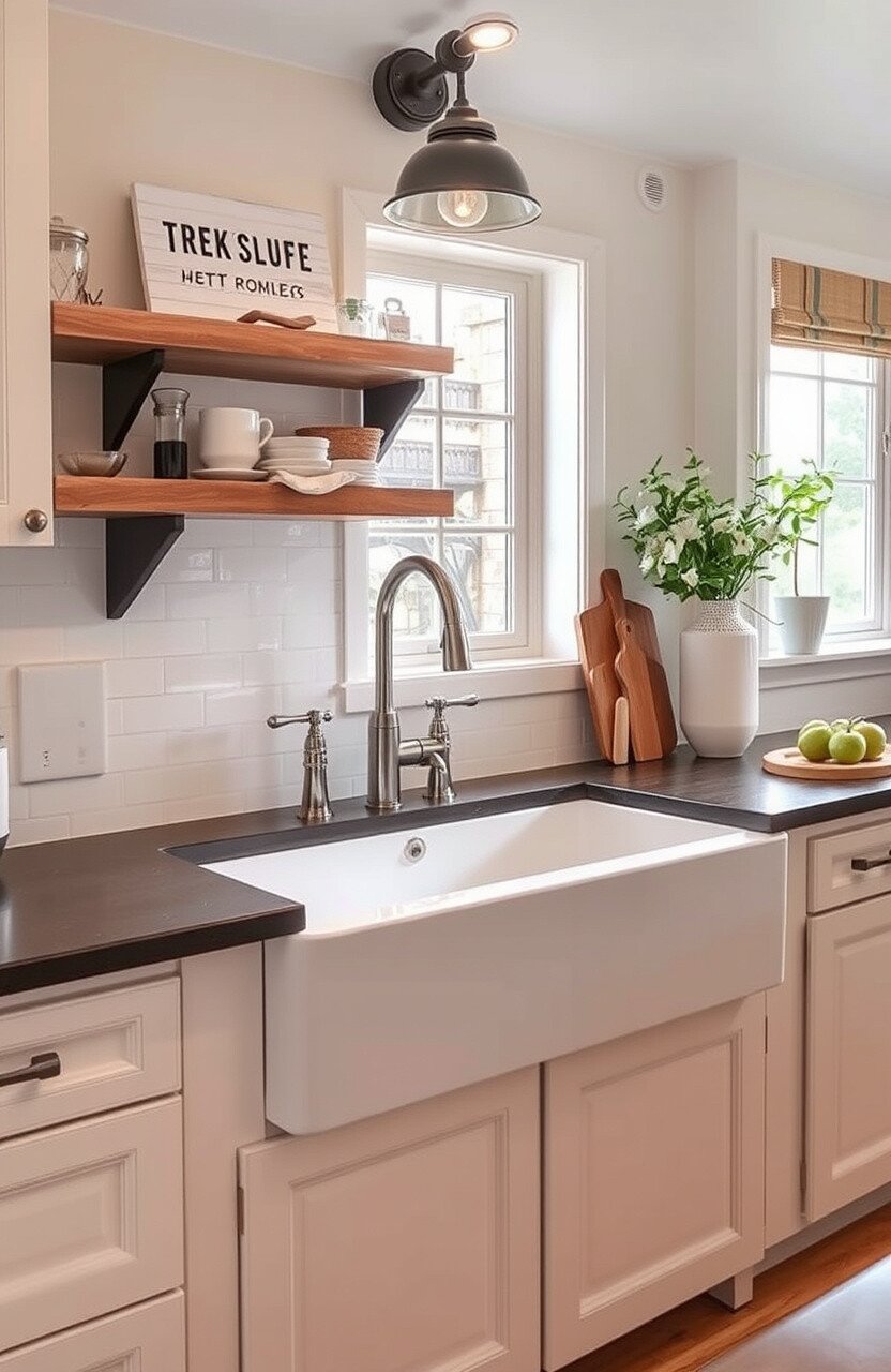 When choosing a farmhouse sink, consider materials like stainless steel or fireclay for durability. These materials are easy to clean and maintain.