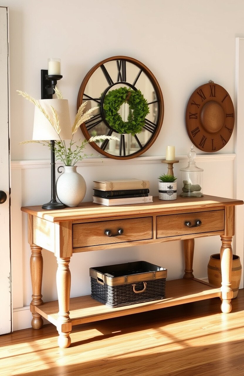 A vintage clock is both functional and decorative. It adds a timeless touch to your entryway, reminding you of simpler times.