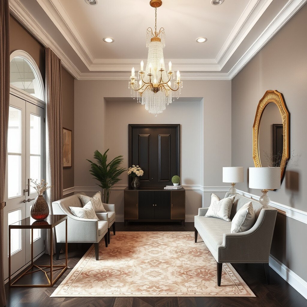 Make your foyer sparkle with glamour. Use metallics, mirrors, and luxurious fabrics.