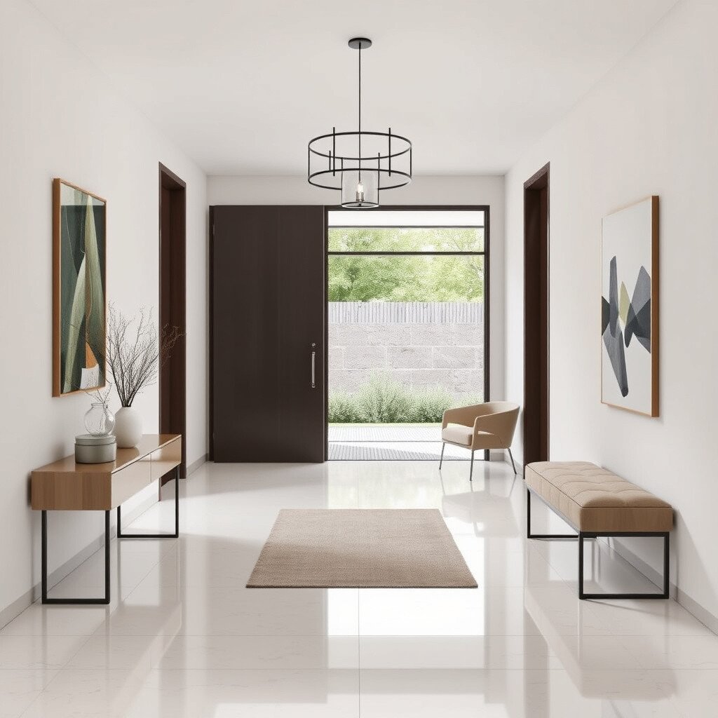 Imagine walking into a space that feels open and serene. A minimalist foyer uses simple lines and a neutral palette to create a calming entrance.